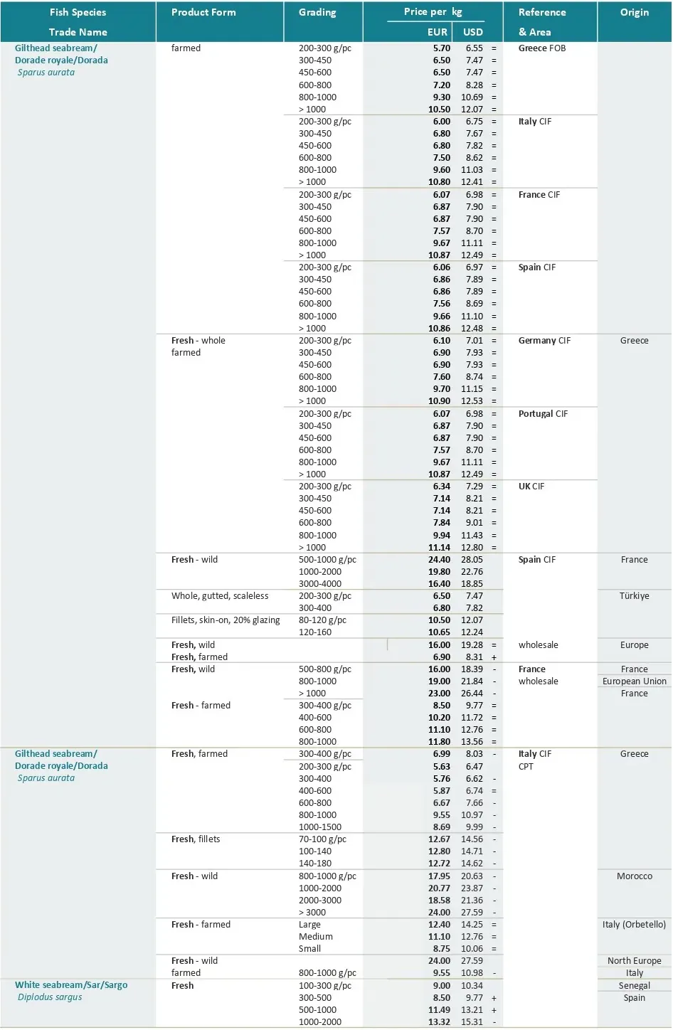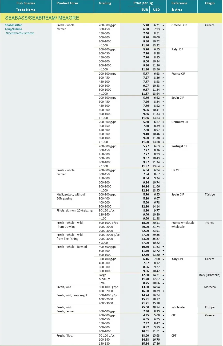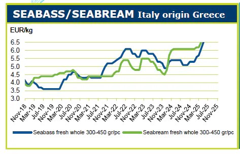 در نوامبر ۲۰۲۵، قیمت‌های تولید و صادرات هر دو گونه سی‌باس و سی‌بریم در یونان در سطح قیمت‌های اکتبر ۲۰۲۵ ثابت باقی ماند. تقاضای مربوط به کریسمس برای هر دو گونه افزایش خواهد یافت و احتمال برخی افزایش‌های موقتی قیمت در سال آینده وجود دارد.