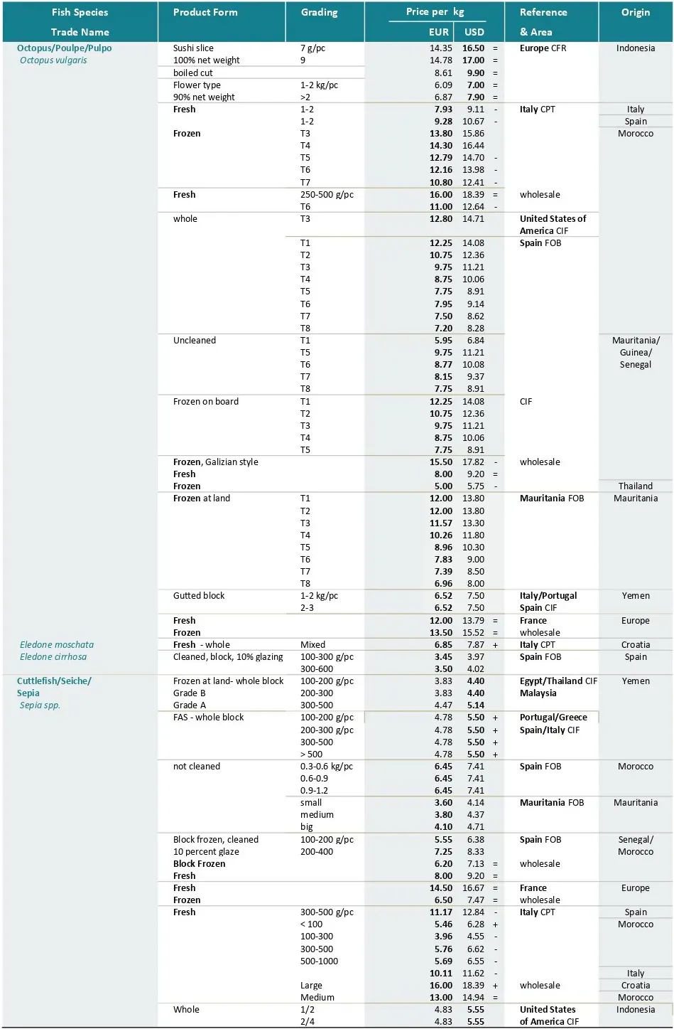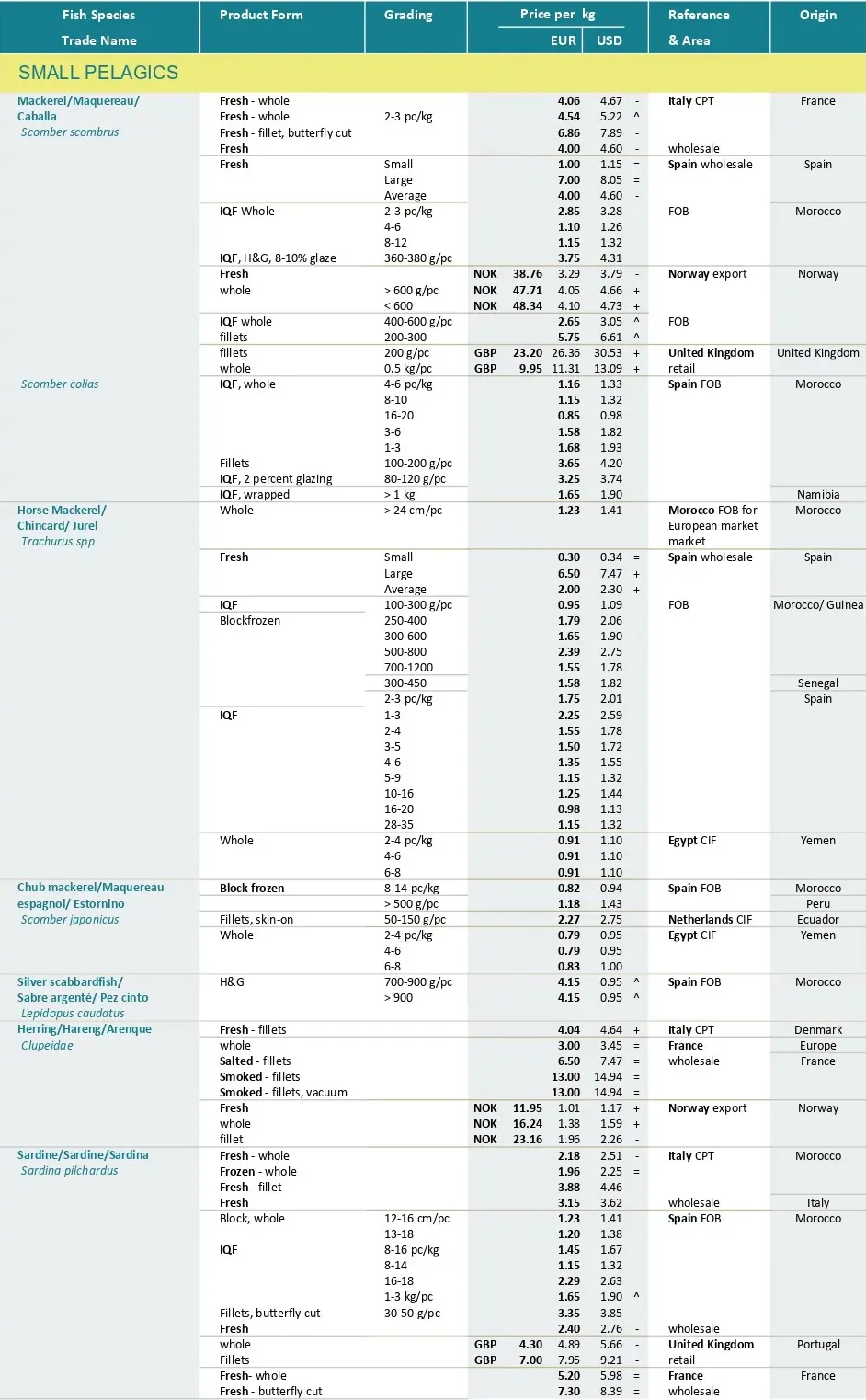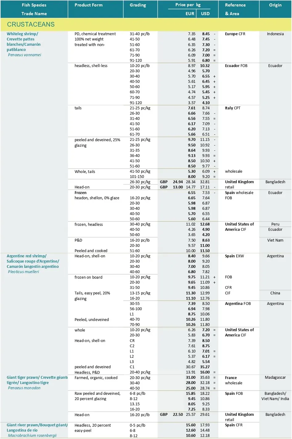 تجارت در آستانه کریسمس با افزایش تقاضا و سطوح قیمتی بالاتر برای برخی محصولات کلاسیک جشن‌ها مانند لابستر و صدف خوراکی همراه است. با وجود این روند عموماً مثبت، عدم قطعیت همچنان حاکم است. در حالی که معمولاً قیمت محصولات در این مقطع از سال افزایش می‌یابد، در ماه نوامبر تعدادی از آن ها ۲۰ درصد افزایش قیمت داشتند ، ۱۹ درصد کاهش یافتند و قیمت ۶۱ درصد از آن ها ثابت باقی ماند. افزون بر این، برخی از سطوح قیمتی که گونه‌های ماهیان کف‌زی در طول سال به آن رسیده‌اند، بیش از حد گران تلقی می‌شوند و بازرگانان به دنبال جایگزین‌های کم‌هزینه‌تر هستند.