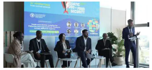 به‌عنوان بخشی از این رویداد، فائو همچنین یک نشست جانبی با عنوان »پیشبرد دسترسی پایدار به بازار: تأثیر فزاینده مقررات تجاری غیرسنتی بر رقابت‌پذیری محصولات شیلات و آبزی‌پروری«  برگزار کرد. این نشست به این موضوع پرداخت که چگونه موافقت‌نامه‌های تجاری ترجیحی به‌طور فزاینده بندهای غیرسنتی را فراتر از تعرفه‌ها و سهمیه‌ها در بر می‌گیرند؛ بندهایی که به پایداری، حقوق کار، حفاظت محیط‌زیست و مدیریت مسئولانه صید می‌پردازند. با استفاده از داده‌های Ag-ERP فائو و پایگاه داده موافقت‌نامه‌های تجاری عمیق بانک جهانی، این بحث بر افزایش چشمگیر مفاد مرتبط با شیلات در دهه‌های اخیر تأکید کرد که نشان‌دهنده پیوندهای قوی‌تر میان تجارت و پایداری محیط‌زیست است.