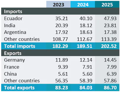 در بازارهای خاص اتحادیه اروپا، واردات در اسپانیا، فرانسه، آلمان، پرتغال و یونان افزایش داشت؛ در مقابل، کاهش واردات در پادشاهی هلند، ایتالیا، دانمارک و لهستان مشاهده شد. واردات در منطقه اروپای شرقی نیز بهبود نیافت که یکی از دلایل آن جنگ اوکراین بود.