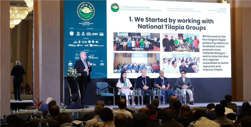 USSEC در حمایت از این تلاشها، رویکردی مشارکتی و عملی اتخاذ میکند. در سراسر آسیای جنوب شرقی، ما با تولیدکنندگان، شرکتهای خوراک دام، محققان و ذینفعان دولتی برای به اشتراک گذاشتن دانش و ایجاد ظرفیت، همکاری نزدیکی داریم. این شامل سازماندهی و حمایت مالی مشترک از کنفرانسها و کارگاههای فنی، مانند Tilapia 2025، و همچنین مشارکت فنی روزانه توسط متخصصان آبزیپروری منطقهای USSEC است. این فعالیتها به اتصال بهترین شیوهها در فرمولاسیون خوراک، مدیریت مزرعه، پایداری و قابلیت ردیابی به نیازهای صنعت محلی کمک میکند.