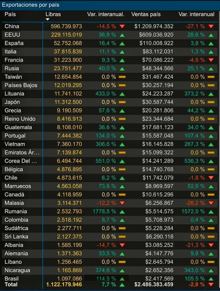 سهم از کل صادرات اکوادور: ۵۳.۲٪ (۱۶.۵-%)